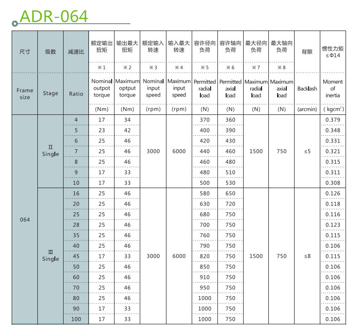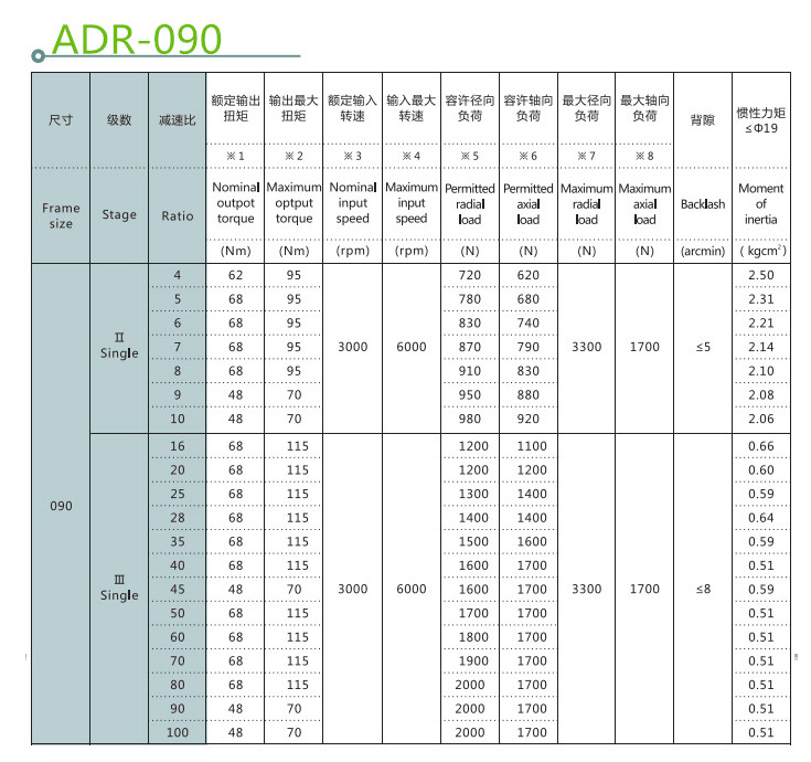 斜齒行星減速機產(chǎn)品參數(shù):
